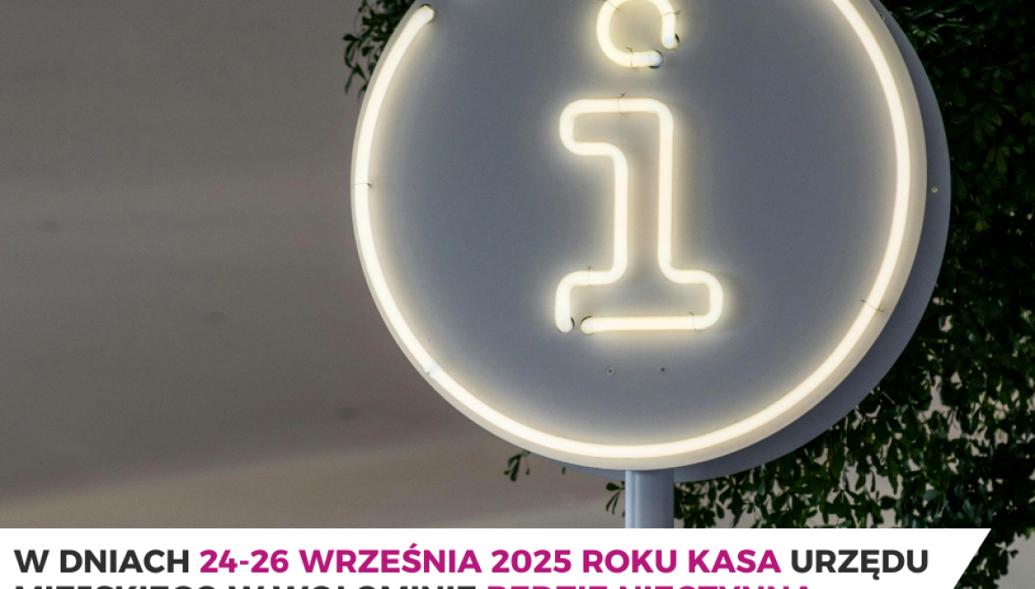 Informujemy, że w dniach 24–26 września 2025 r. kasa Urzędu Miejskiego w Wołominie będzie nieczynna.