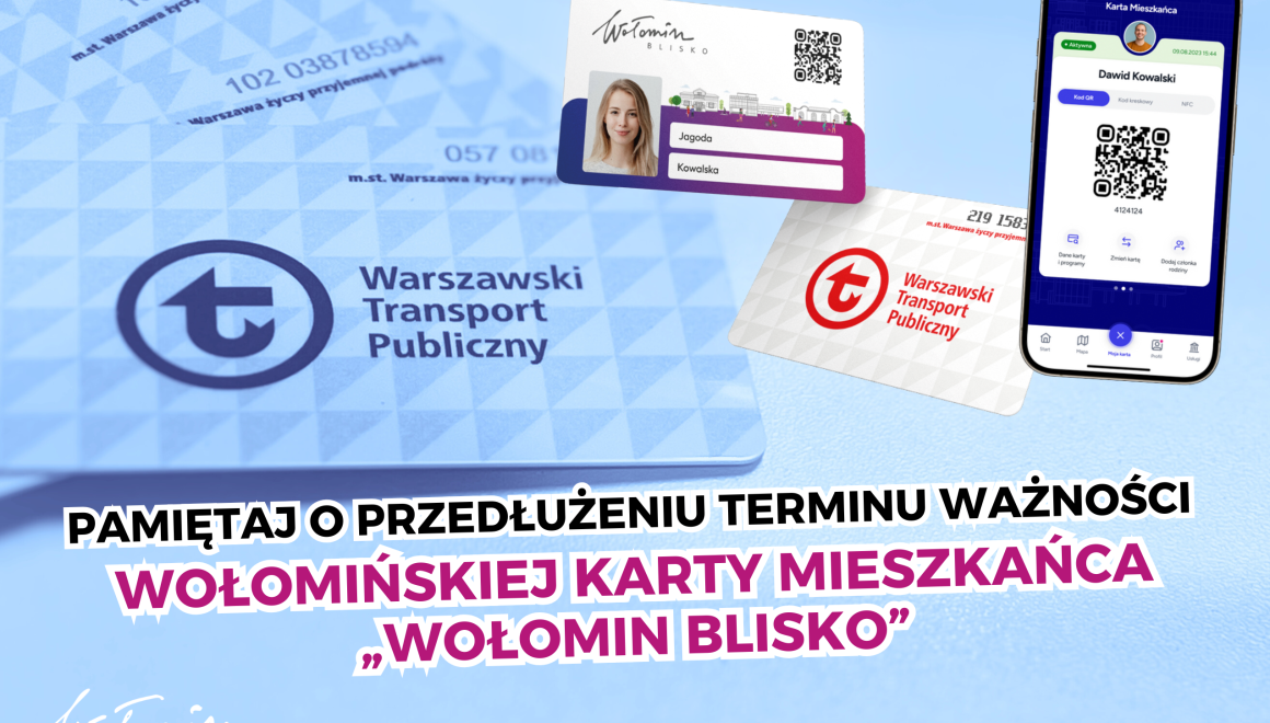 Posiadacze Wołomińskiej Karty Mieszkańca oraz Wołomińskiej Karty Mieszkańca Senior „Wołomin Blisko” powinni pamiętać o przedłużaniu ważności swoich kart. To dzięki temu mogą wciąż korzystać z licznych zniżek, ulg i benefitów – m.in. tańszych przejazdów komunikacją miejską w ramach Biletu Metropolitalnego (Warszawa+) oraz ofert przygotowanych przez partnerów programu.