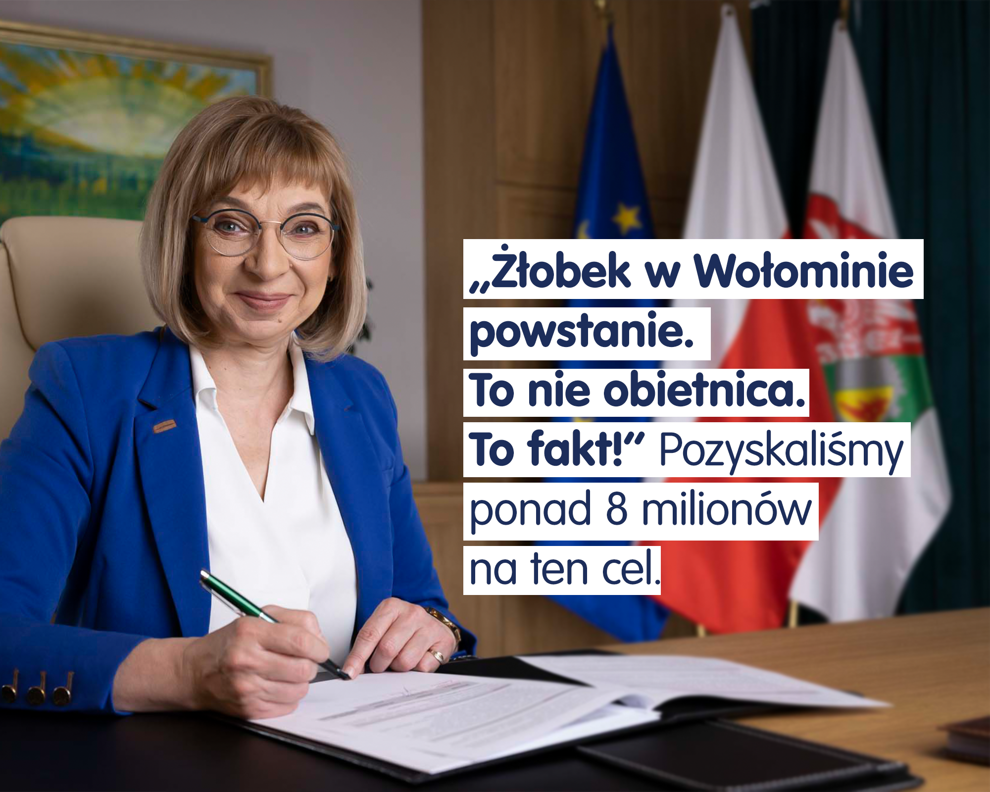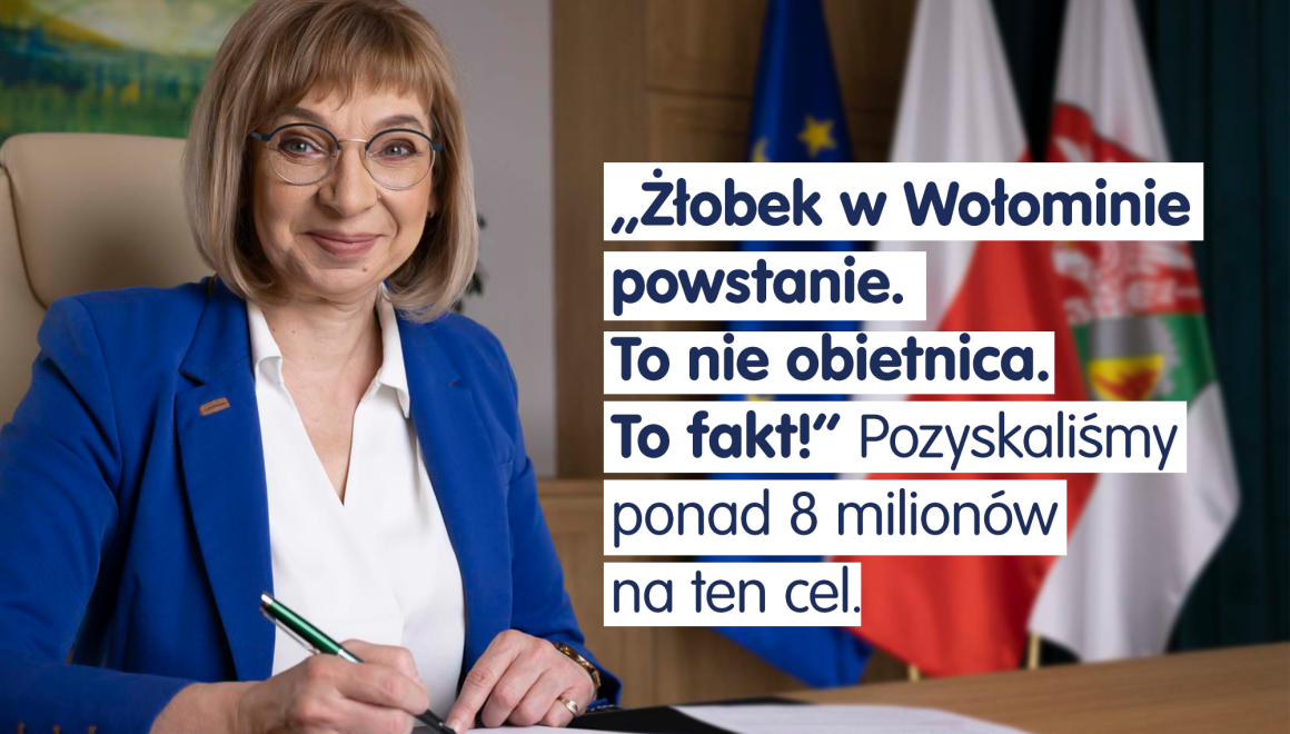 Umowa dofinansowania została podpisana w listopadzie 2023 roku – na ten cel udało się pozyskać ponad 8 milionów złotych. Żłobek powstanie przy przedszkolu im. Pyzy Wędrowniczki, które po odpowiedniej adaptacji, będzie doskonałym środowiskiem edukacyjnym zarówno dla przedszkolaków, jak i młodszych dzieci. Realizowane inwestycje pokazują, że gmina Wołomin naprawdę stawia na wsparcie rodzin. Zgodnie z umową o dofinansowanie żłobek musi powstać do lutego 2026 r.