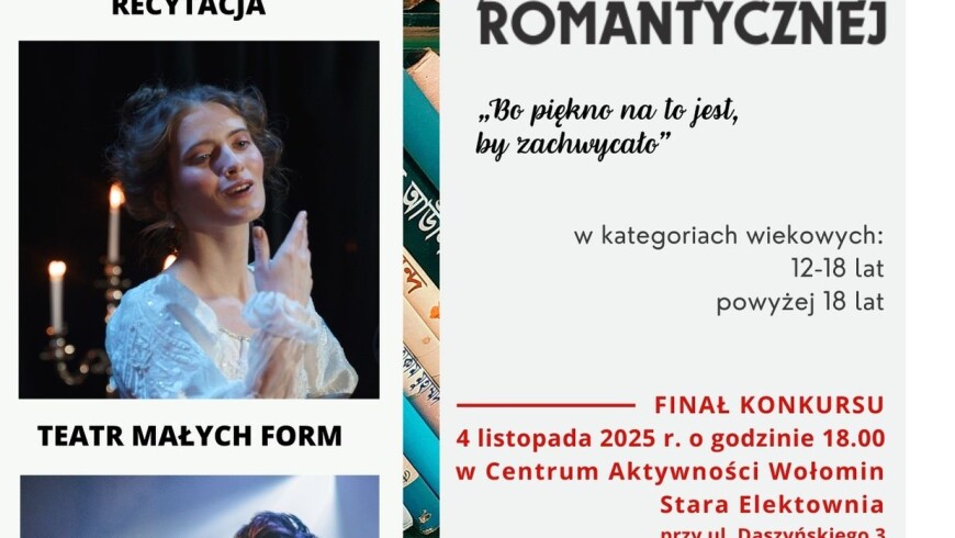 Hasło przewodnie tegorocznej edycji brzmi: „Bo piękno na to jest, by zachwycało”. Konkurs kierowany jest do młodzieży w wieku 12–18 lat oraz dorosłych powyżej 18 roku życia. W ramach finału uczestnicy zaprezentują swoje interpretacje literatury romantycznej w trzech kategoriach: recytacja, teatr małych form i poezja śpiewana. To nie tylko okazja do odkrywania młodych talentów, ale także święto literatury i sztuki scenicznej, które odbywa się w niezwykłej przestrzeni Starej Elektrowni.