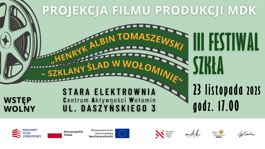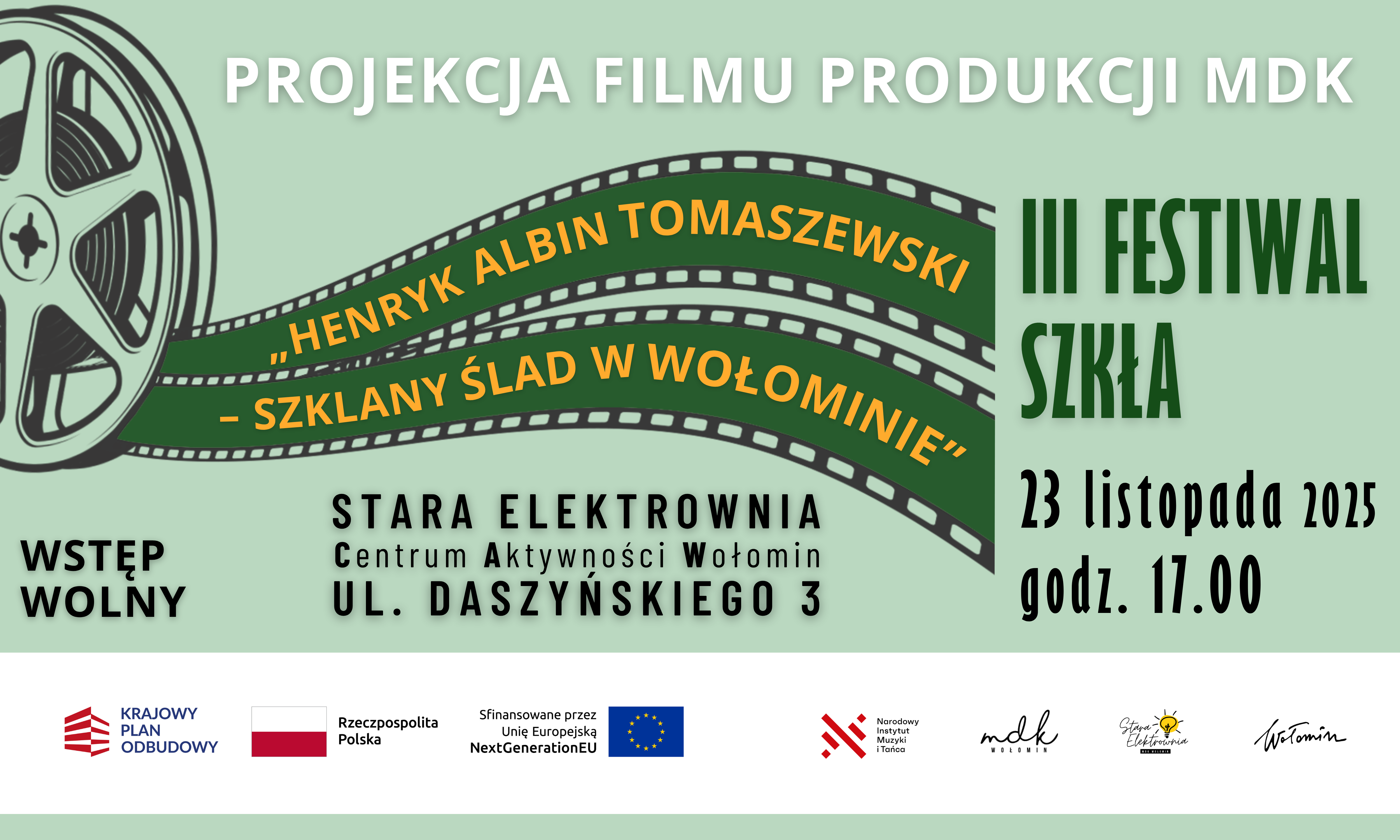 Podczas festiwalu zostanie zaprezentowany projekt realizowany dzięki środkom z Krajowego Planu Odbudowy – film poświęcony Henrykowi Albinowi Tomaszewskiemu, Artyście związanym z Hutą Szkła w Wołominie. Produkcja powstaje na podstawie umowy z Narodowym Instytutem Muzyki i Tańca.