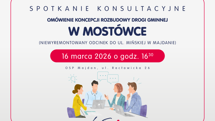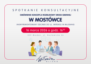 Przed nami ważny etap przygotowań do rozbudowy drogi gminnej na odcinku od wysokości działki ew. nr 370, obręb 0004 w Mostówce do drogi powiatowej – ul. Mińskiej w Majdanie (cały niewyremontowany fragment od ul. Majdańskiej).