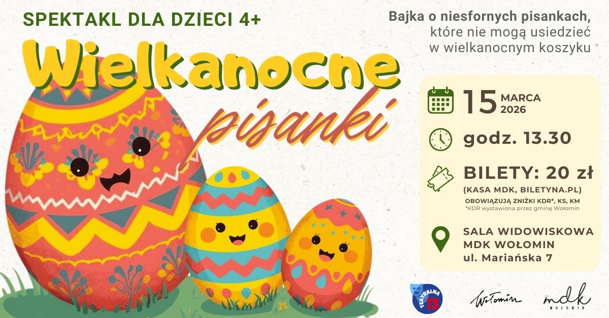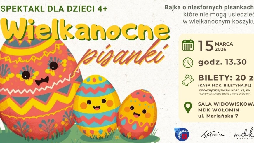 15 marca o godzinie 13.30 przedstawimy spektakl o niesfornych pisankach, które nie mogą usiedzieć w wielkanocnym koszyku...