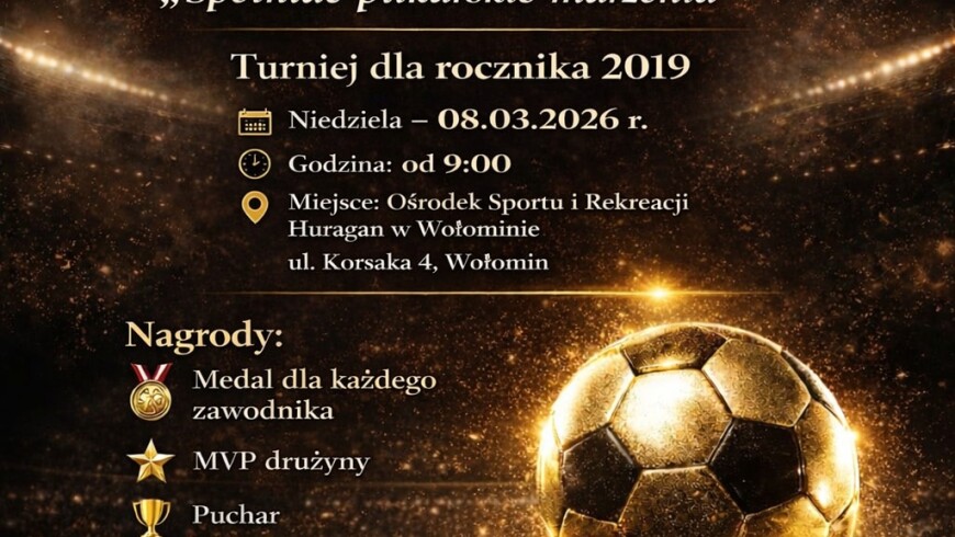 Już w najbliższą niedzielę od godziny 9:00 na sztucznym boisku przy ul. Korsaka 4 w Wołominie odbędzie się turniej OSiR Huragan Cup „Spełniać piłkarskie marzenia” dla zawodników z rocznika 2019.