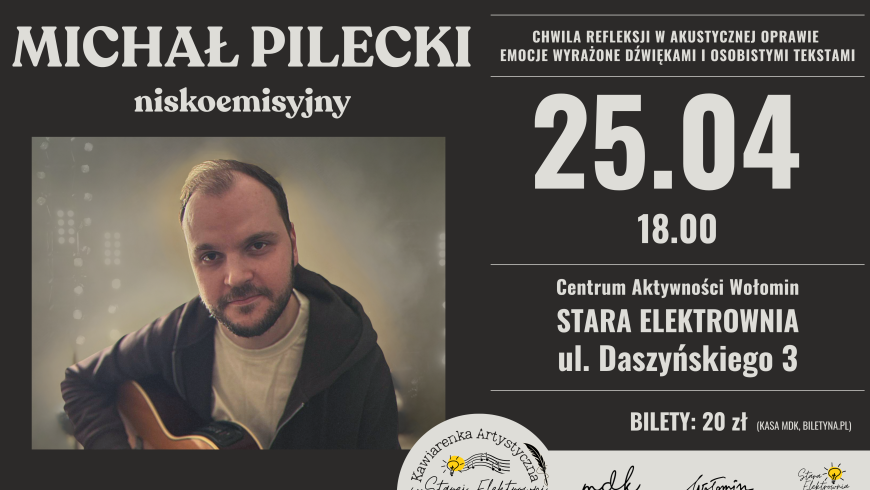 To solowy występ Michała Pileckiego, podczas którego artysta zaprosi słuchaczy do świata osobistych tekstów, nastrojowej muzyki i akustycznego brzmienia. ![]()
